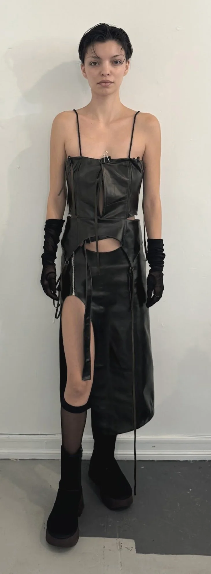Leather top and skirt, patterns altered and constructed.